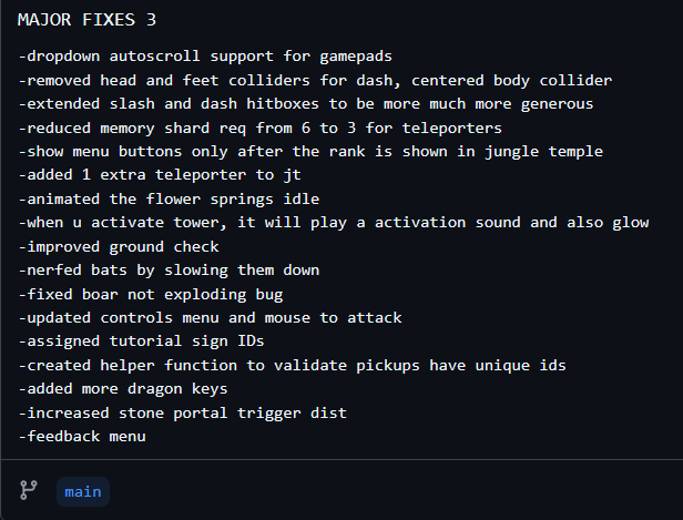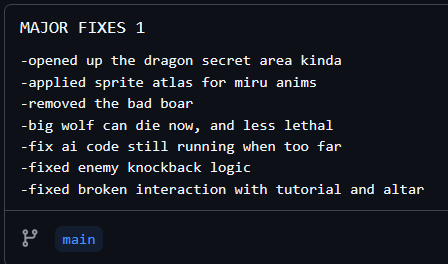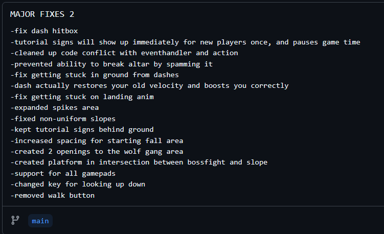 The game would have released a year back, but clearly it was not ready and it took us another year of bugfixes and improvements to really complete it, however I'd like to say that we honestly believe the game is now more of a DEMO, simply because we had such high plans for it. The initial plan for release was 24th Nov, however something unexpected changed that. As an experiment I tried using a platform for playtesting. But I was completely amazed at the results! The testing was done as a video recording of them playing and talking about the game, which gave us real-time feedback and while we discovered a bunch of bugs, we also ended up discovering a ton of Quality-of-Life (QoL) issues that were kinda shocking almost. We felt kinda guilty about what we were making testers go through, since they had to play the game for atleast 30 mins, but we commend them for their effort! As a result, we decided to push back the release to 1st December as I set about fixing all of the issues discovered. I know it doesnt sound like a big deal for a game like this, but we know that the first impression of our audience matters, and we cant look lazy or detached just because our game is free (and sort of a fail). Below I'm sharing some of the fixes that we implemented, and yes I like to give detailed descriptions to my git commits. This was carried out in 3 days of focused work.