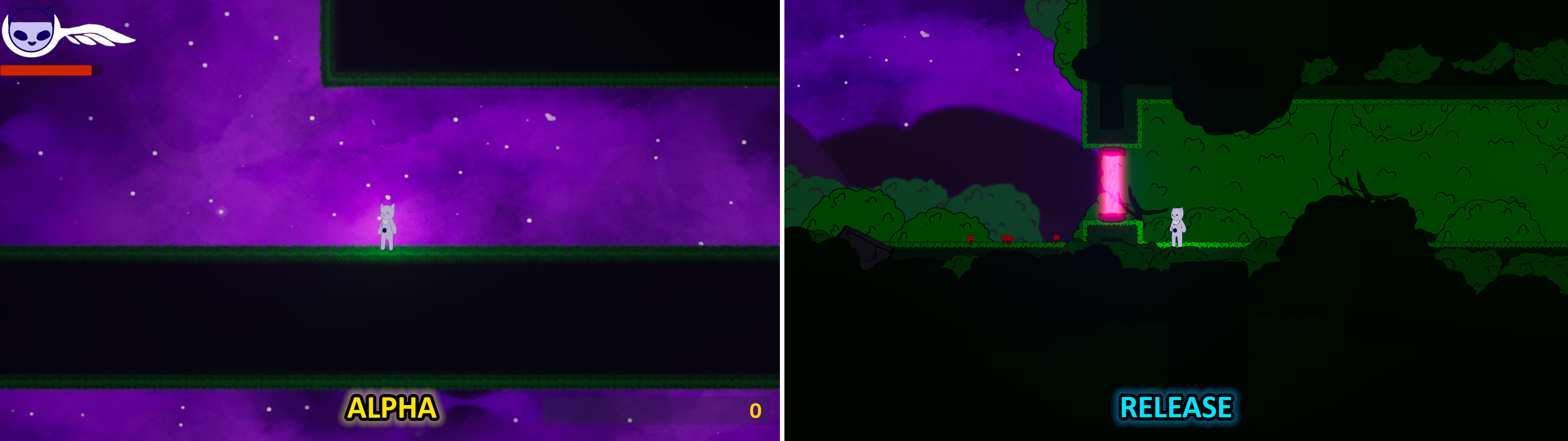 Here is a comparison of our game with a really old "Alpha" version that was 2 years ago.